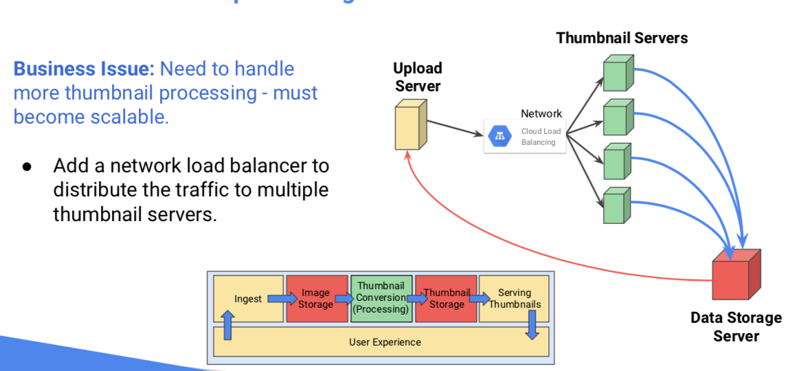 위 그림에서 Thumbnail Servers 들이 Data Storage Server로의 작업이 완료되었을 경우, Data Storage Server는 Trigger를 통하여 Upload Server로 알려줌