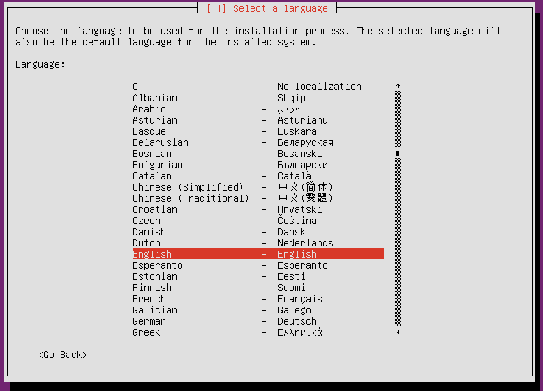 어차피 서버로만 사용하기 때문에 언어는 영어로 선택하였습니다.