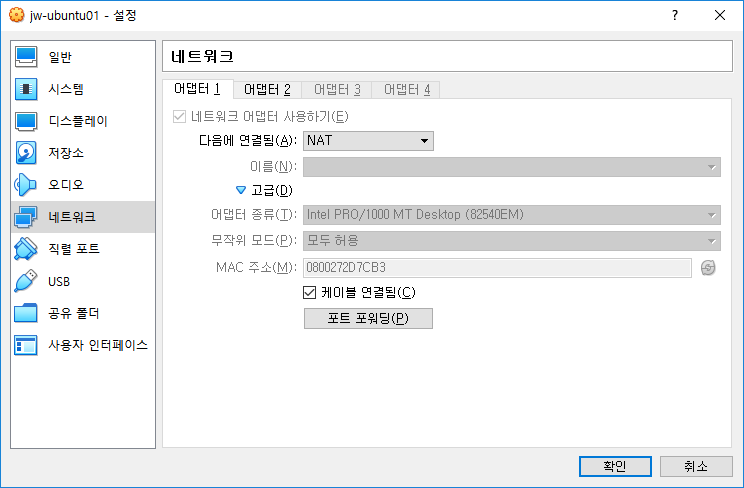 - Network adapter 1. NAT 설정