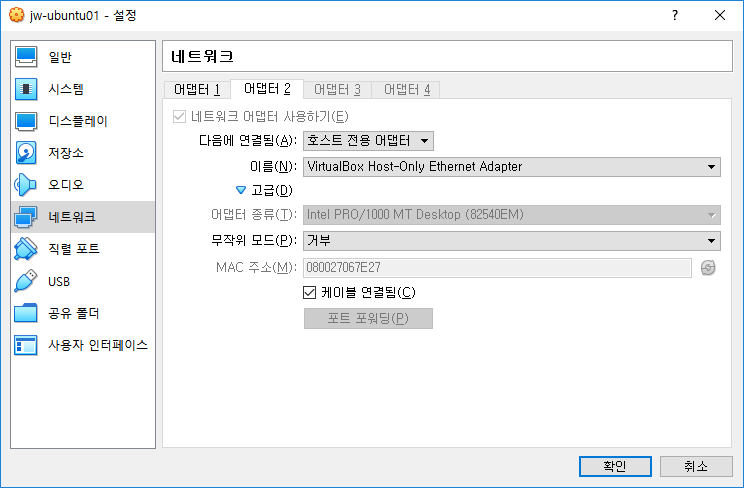 - Network adapter 2. Host-only 설정