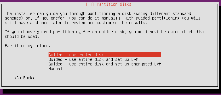 전체 디스크로 가이드 받는다고 선택하였습니다.