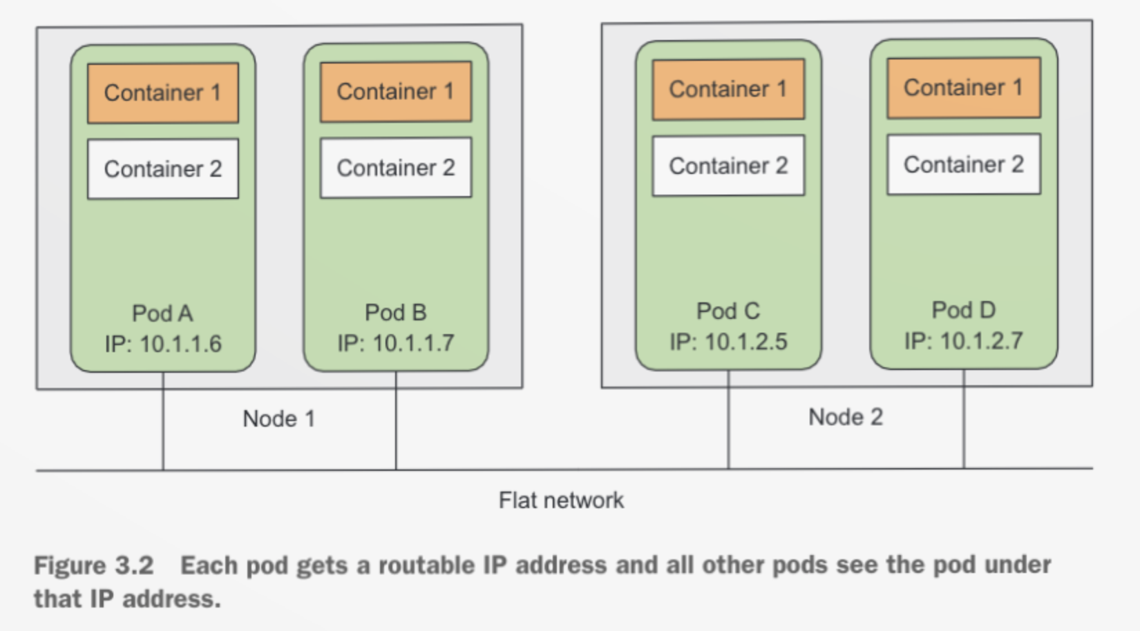 기본적으로 쿠버네티스 클러스터의 모든 포드는 하나의 플랫과 공유 공간, 네트워크 주소 공간에 위치하게 됩니다. 즉, 모든 포드는 다른 포드에 접근할 수 있습니다. 또한 포드 사이의 NAT 게이트웨이가 없기 때문에 포드끼리 서로 네트워크 패킷을 주고 받게 되면, 상대의 실제 주소가 패킷의 소스 IP로 보여지게 됩니다.