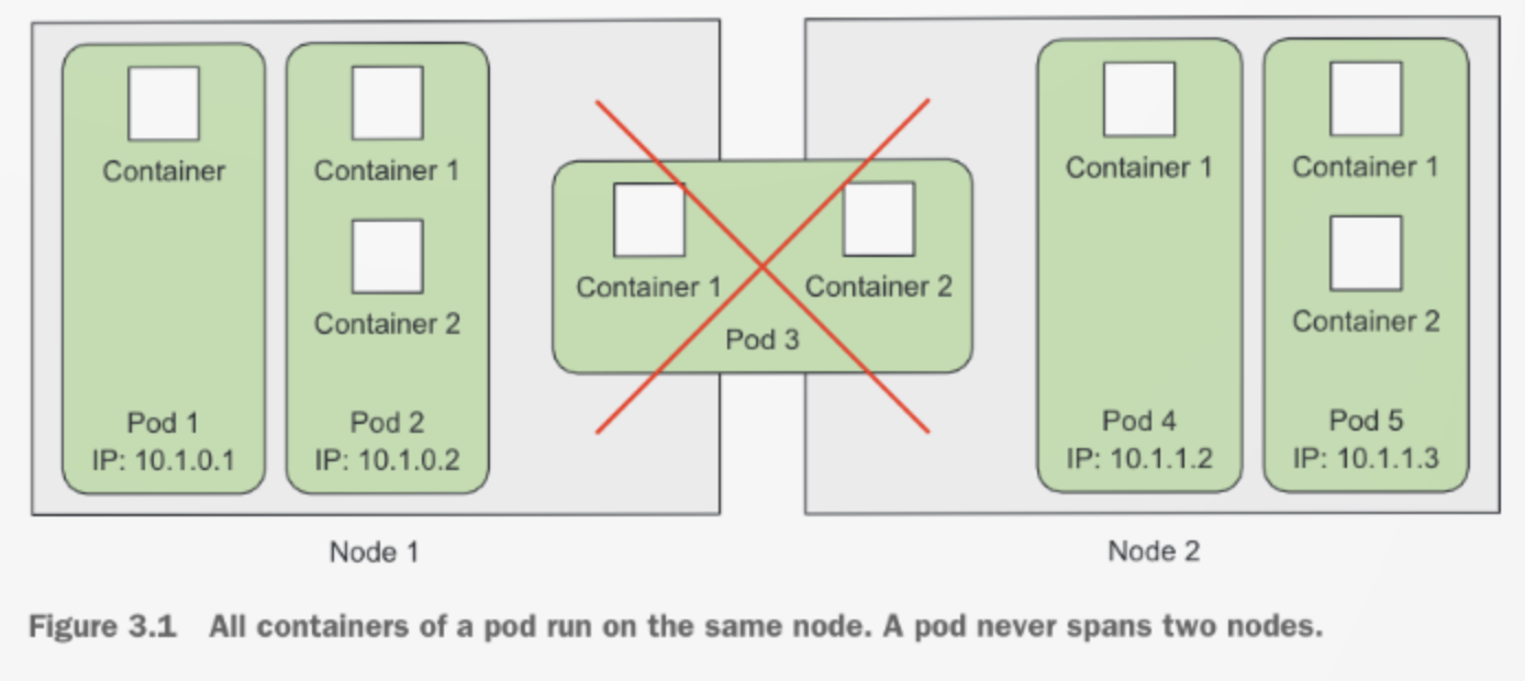 포드는 여러개의 컨테이너를 포함할 수 있지만, 그 컨테이너들은 모두 동일한 워커 노드에서 실행된다는 점을 알아두시면 좋을 것 같습니다.