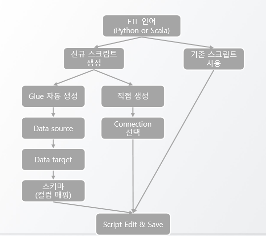 Glue는 AWS에서 제공하는 스파크 기반의 ETL 서비스입니다. 우리는 Spark 기반의 스크립트를 작성하여 Glue Job을 이용할 수 있습니다.