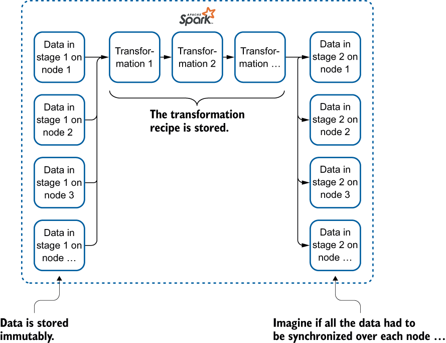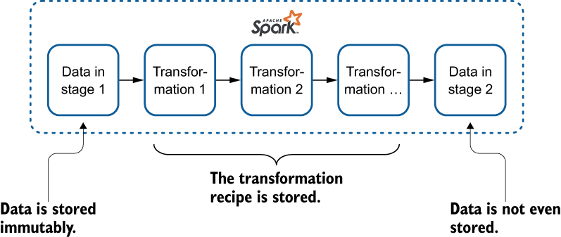 Spark는 Lazy하다고 했었죠? 스파크는 여러 Transformation 요청들을 레시피(recipe) 형태로 저장합니다. 그리고 Action이 취해지면 한 번에 실행하죠.