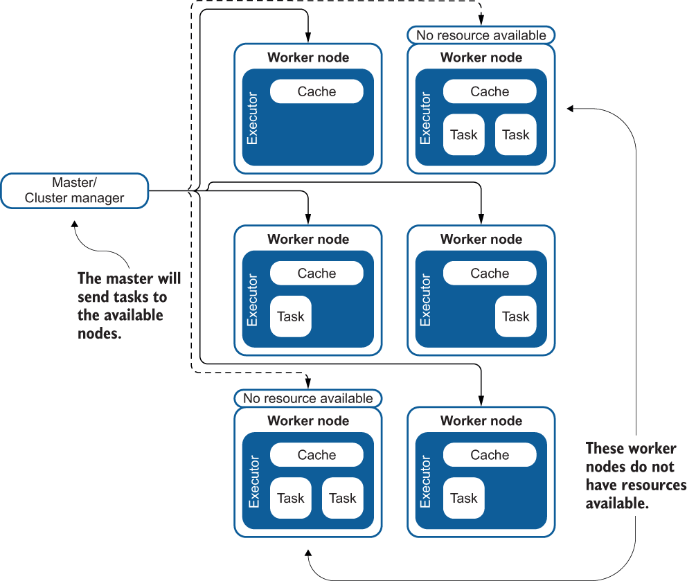 요청받은 마스터는 가용한 리소스가 있는 노드에 작업 분할(Executor에 코드 배포)