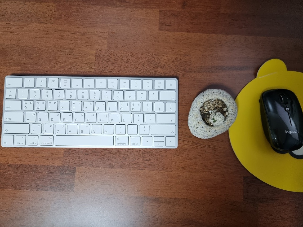 화분으로 장식했음에도 넓어보이는 책상에, 그러면서도 허전하지 않은 모습에,
