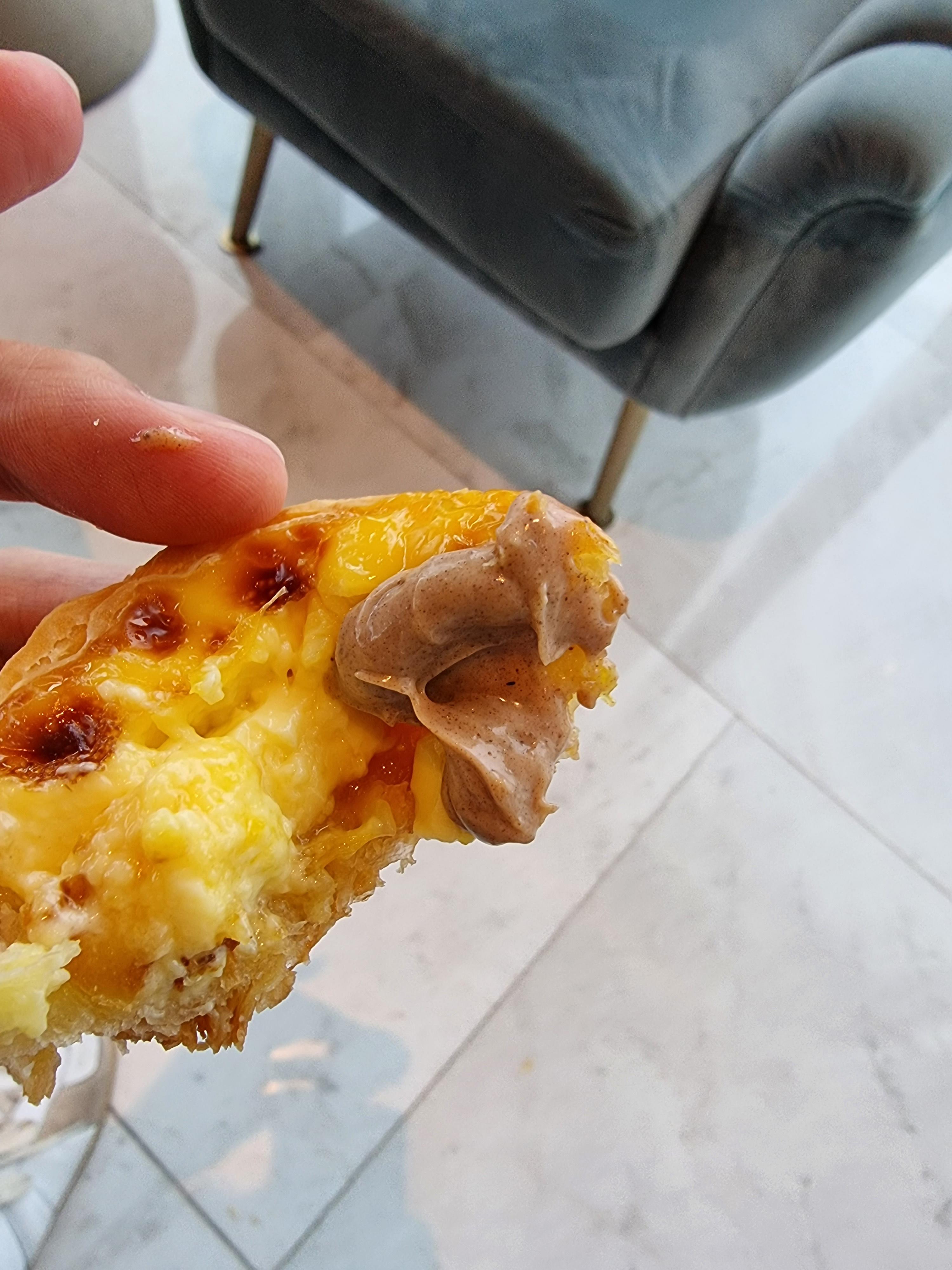 계피 같은 소스에 찍어먹으라고 안내를 받았는데, 에그 타르트의 살짝 기름진 부분을 잘 잡아주는 느낌이었습니다.