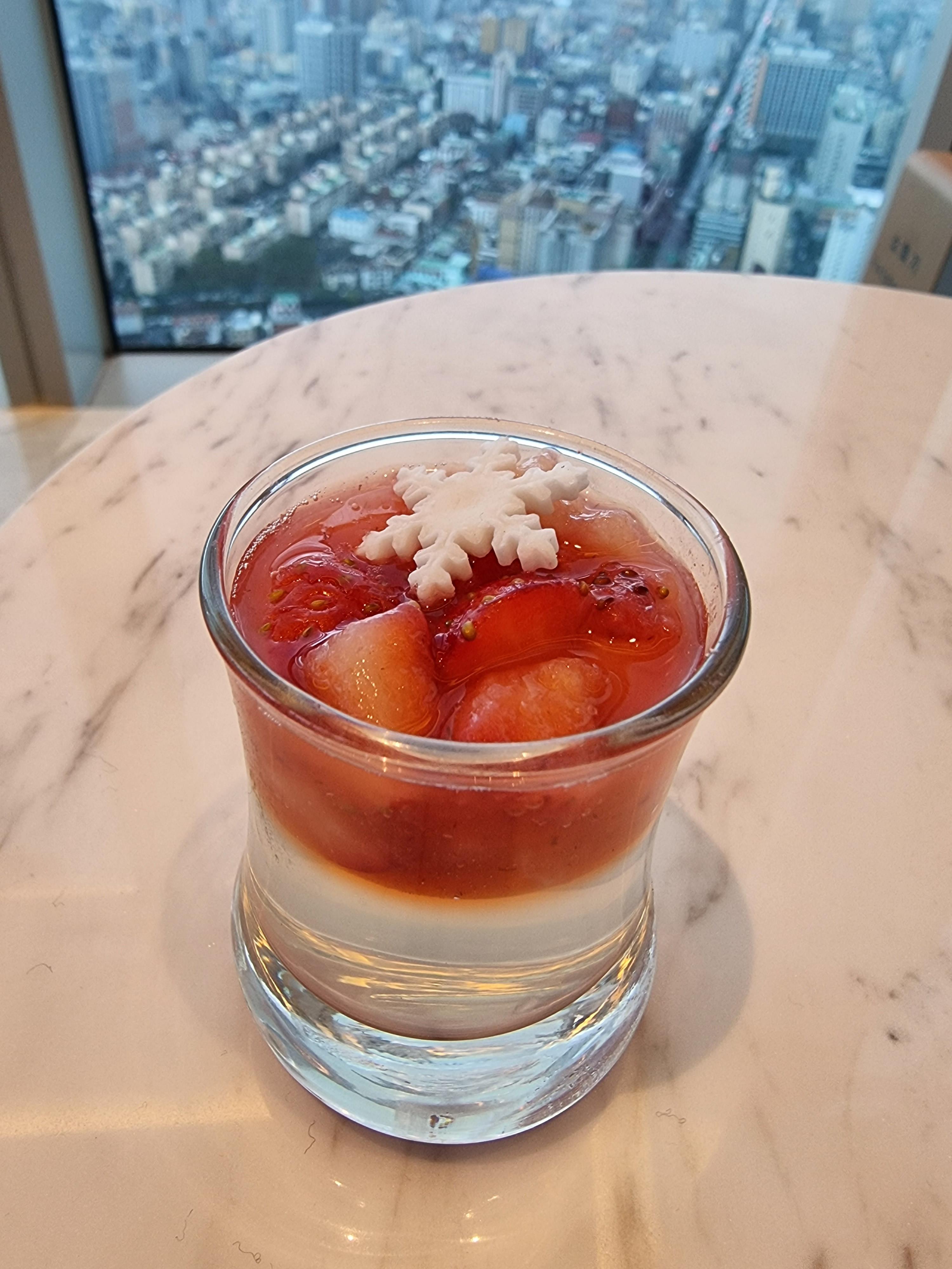 샴페인이 섞인 딸기 푸딩입니다. 술맛은 아주 미미하게 납니다.