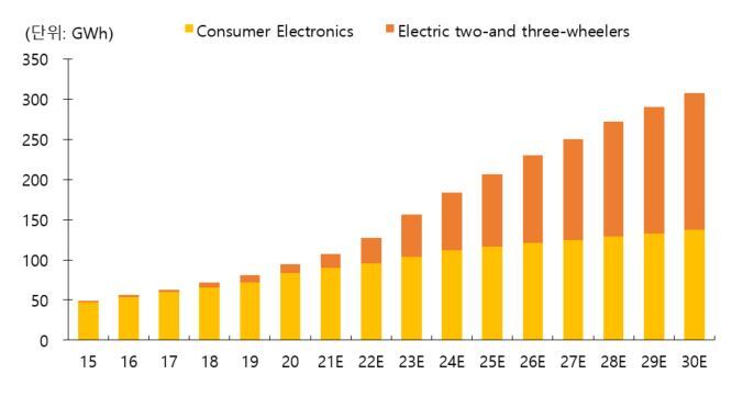 단, 스마트폰이나 노트북과는 다른 새로운 IOT 장비들에 배터리 산업은 커질 것으로 보고 있습니다.