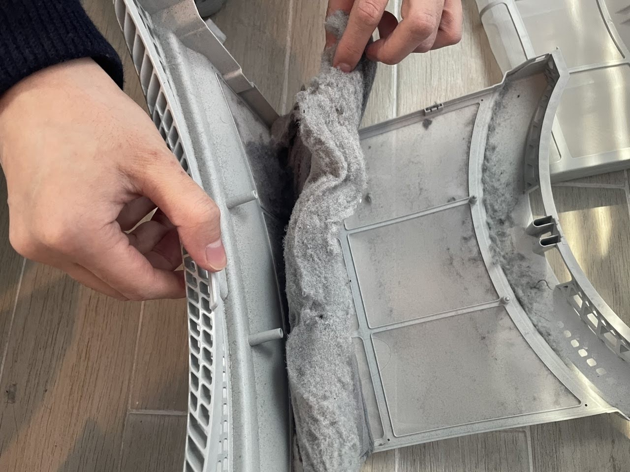 그래서 건조기를 열고 필터를 확인해보니 먼지가 엄청 쌓여있더라고요..