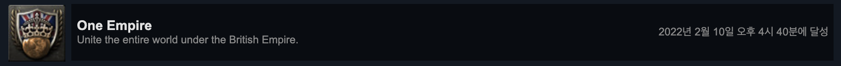 어떻게 깼었는지 정확히 기억이 안나는데, 'One Empire' 미션을 진행하며 독립하였던 이전 종속국에 내전을 일으켰을 때 클리어되었던 것 같습니다.