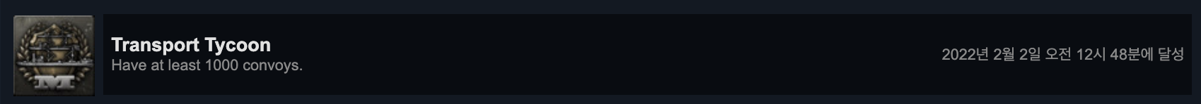 수송선을 1000개 이상 보유하면 클리어됩니다. 이것도 장기전을 가다보면 자연스럽게 클리어할 수 있습니다.