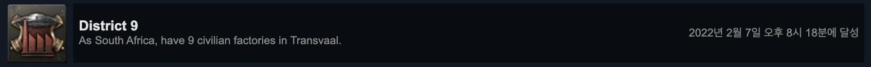 남아프리카로 트란스발 지역에 9개의 민간 공장을 보유해야 하는 미션입니다.