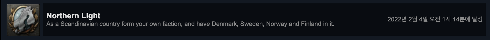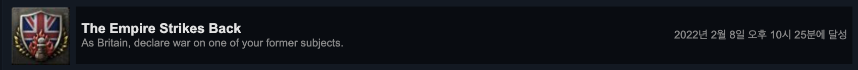 어떤 세력에든 들어가면 클리어됩니다. 기본적으로 하츠오브아이언4의 도전과제 난이도들은 높은 편이지만, 이처럼 기본 튜토리얼 같은 도전과제들도 있습니다.