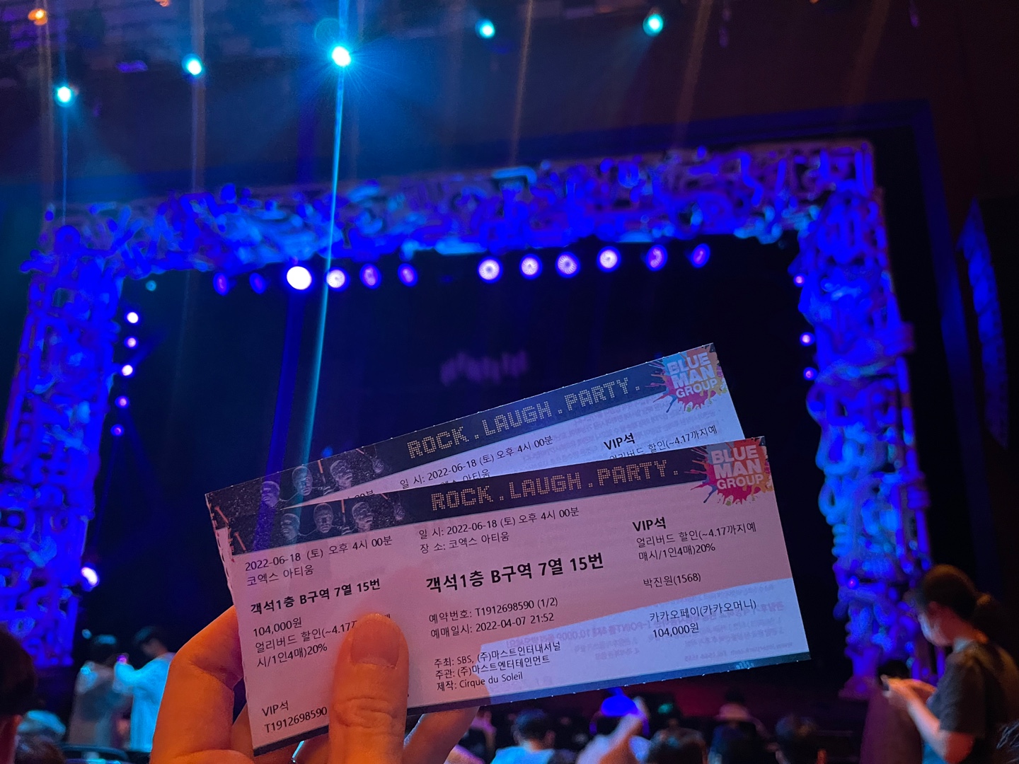 예전 미국에서 보았던 공연장보다 훨씬 큰 코엑스에서 공연이 있었습니다. 가장 앞 좌석은 공연 퍼포먼스 때문에 옷이 젖을 수도 있어서 적당히 거리가 있는 VIP 석을 선택하게 되었습니다.