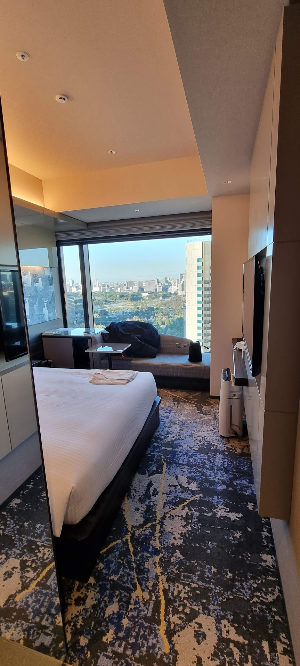 객실 내부 전경은 아래와 같습니다. 도쿄 중심가의 호텔이라 그런지 객실 내부는 좁은 편이에요.