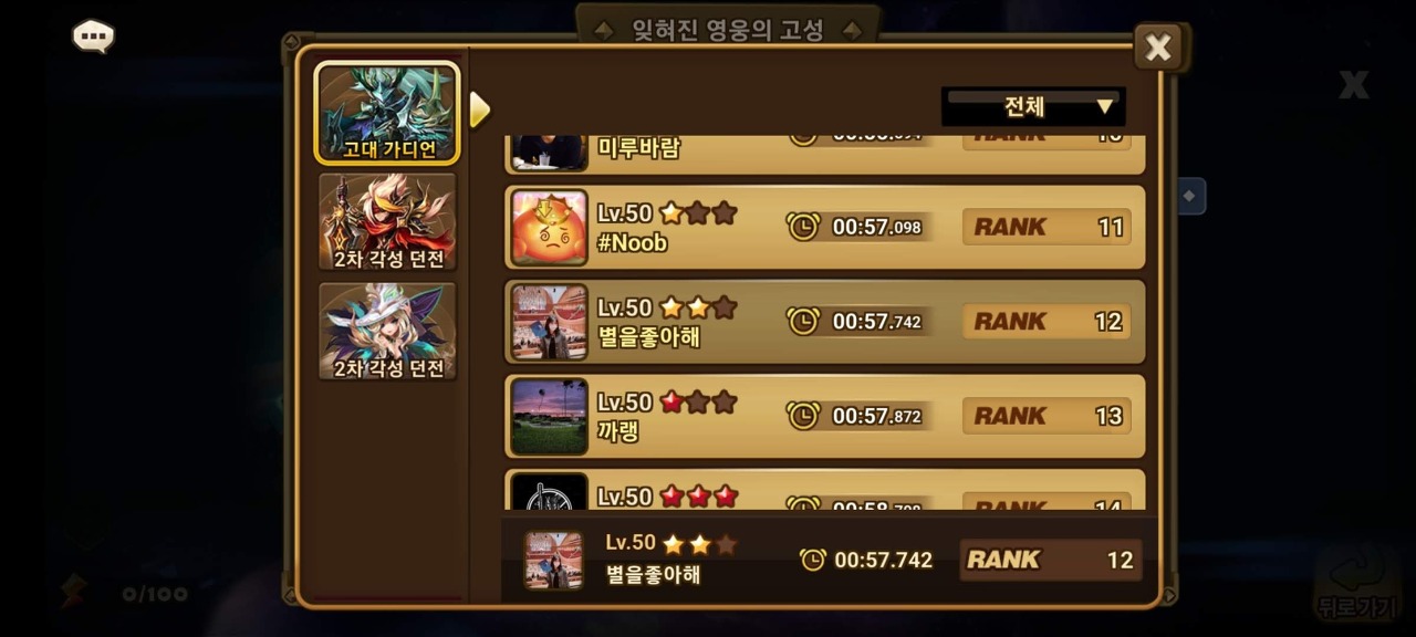 던전 클리어 속도에서 전체 순위 페이지에 들어간 것들 정리.